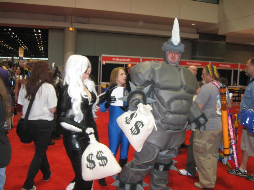 Frequent Spider-Man foes the Black Cat and the Rhino show off their ill-gotten gains, taken from the First National Bank of OldMoviePropVille. Caught unintentionally in the background are the Invisible Woman and possibly Captain Jamaica.