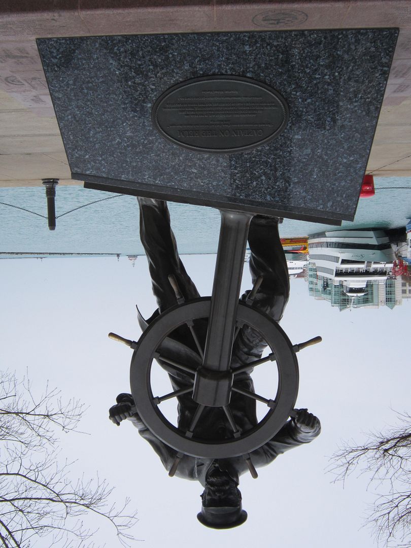 As with other Chicago locales we’ve witnessed, the Navy Pier ambiance benefits from public displays of random art. Among the less random is “Captain at the Helm”, a salute to the all-around ship-drivin’ man.