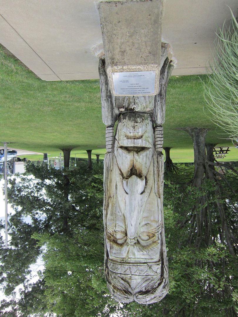 Also at the Pennsylvania welcome center: a 1973 wood-carved salute to the Seneca tribe by sculptor Peter Wolf Toth, or possibly a small-scale replica of a much larger sculpture. We found little context onsite.