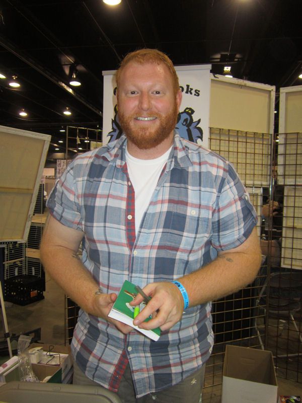 Hosting the panel was one Jarrett Crippen, best known as the Defuser from the reality TV series Who Wants to Be a Super-Hero? My wife and I, fans of that show’s season 2, met him at GenCon several years ago and get a kick out of seeing him work WWC. (Last year I spotted him working with Stan Lee’s security team.)