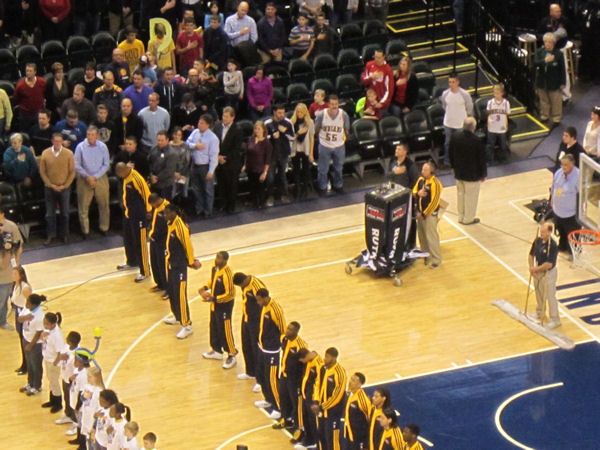 Thus, my first Pacers game. Tonight they squared off against the Charlotte Bobcats, which was an entirely new name to me. I never see them in headlines and thought maybe they were a local high school team, or perhaps a farm team for the Washington Generals. I had no idea. All night long I kept getting them confused with the Carolina Panthers, the Charlotte Hornets, and other teams equally unknown to me. To be fair, though, they held their own on the court all night long, and they behaved themselves during the preshow, time-outs, and halftime.