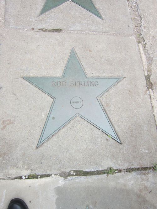 Serling’s boyhood home is also in the vicinity of Recreation Park, but it’s not marked, it’s privately owned, it’s not exactly a showpiece, and it’s in the kind of neighborhood where strangers who park and loiter around people’s houses will likely be accosted by a sheriff. However, downtown Binghamton boasts a special sidewalk star in his honor, Hollywood style.