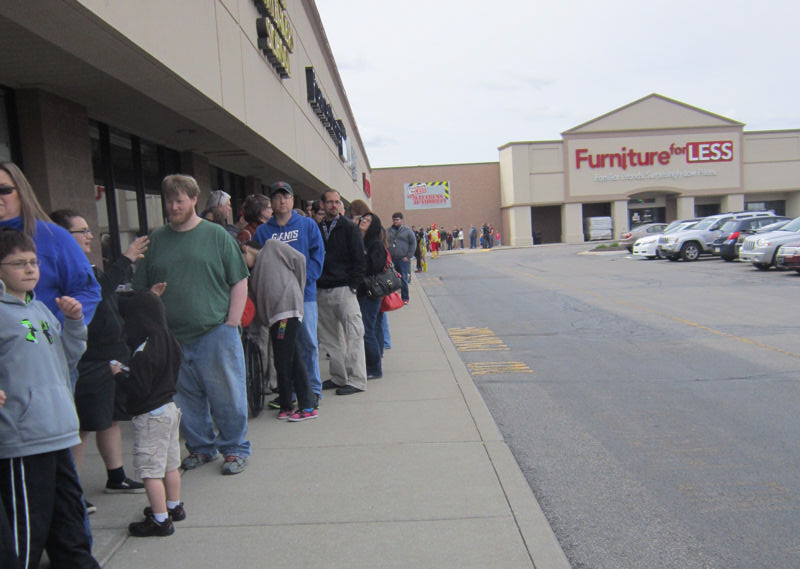 The line was sizable by the time the doors opened at 11 a.m. but moved quickly. The folks from Indy Pop Con brought donuts, coffee, and free swag. Reps from the Indiana Toy and Comic Expo were handing out flyers and a few free tickets. Downtown Comics offered merchandise discounts and a Twitter-based prize drawing for which I still have my fingers crossed.