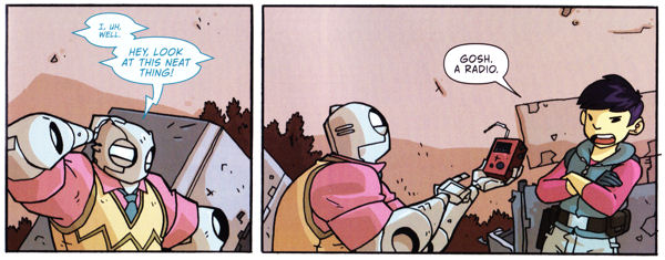 Atomic Robo’s AI systems aren’t so sharp at subtly changing the subject. Art by Scott Wegener.