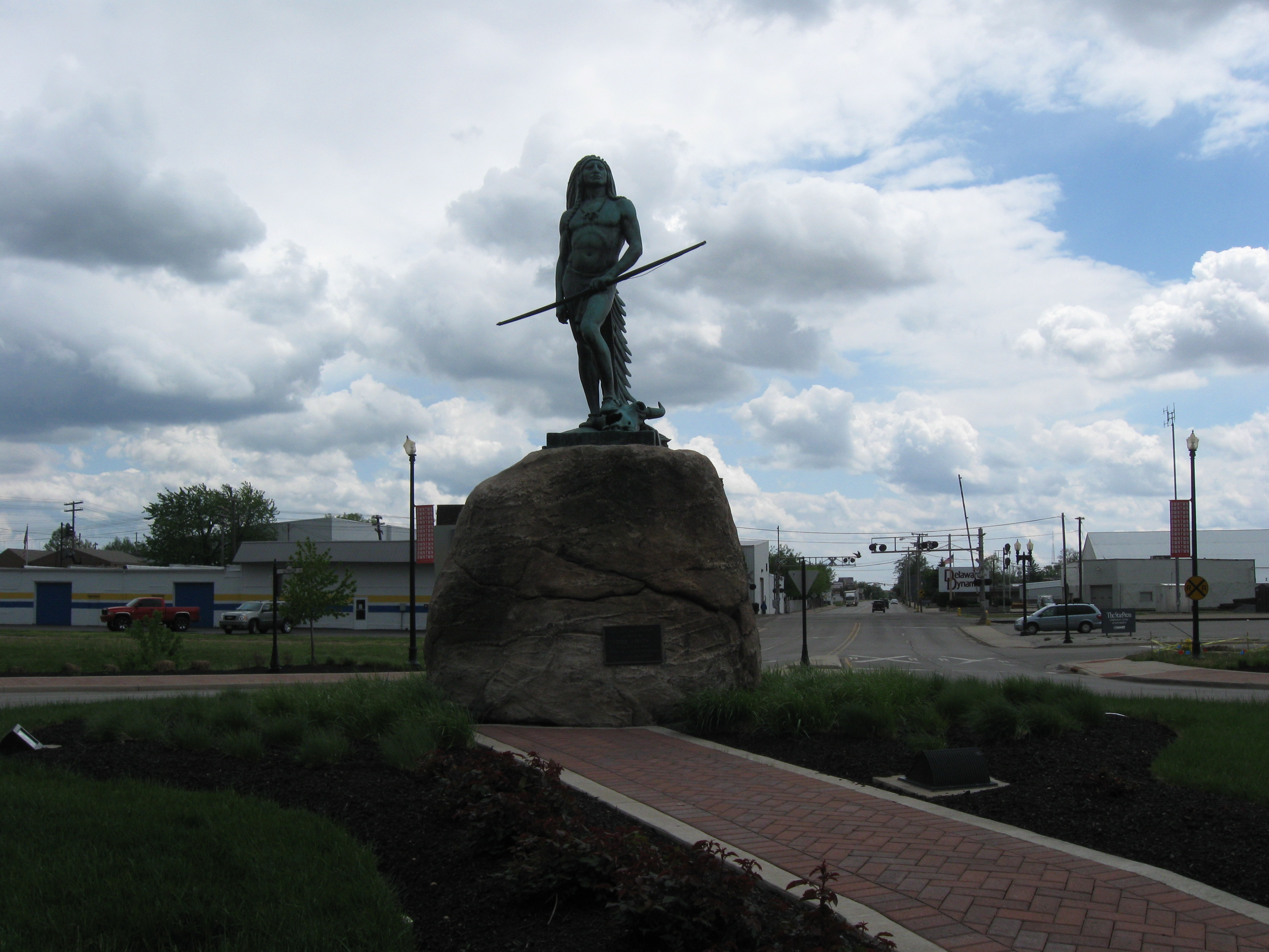 Beyond the borders of Minnetrista, Muncie has a few statues that visitors are required to track down, according to my sister-in-law and all available tourist brochures. At the south end of downtown is “Passing of the Buffalo”, sculpted in 1929 by Cyrus E. Dallin. This one stands in a roundabout and greets anyone who approaches Muncie from I-69 North’s exit 234, assuming you follow Mapquest’s recommendations.