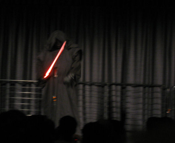 9. Some kind of Sith Lord, wielding his Sith lightsaber, dressed in Sith-approved emo fabrics, and surrounded by interior design from the Martha Stewart Natural Sith collection, on sale now at Kmart. Our theory: might be a bad guy.