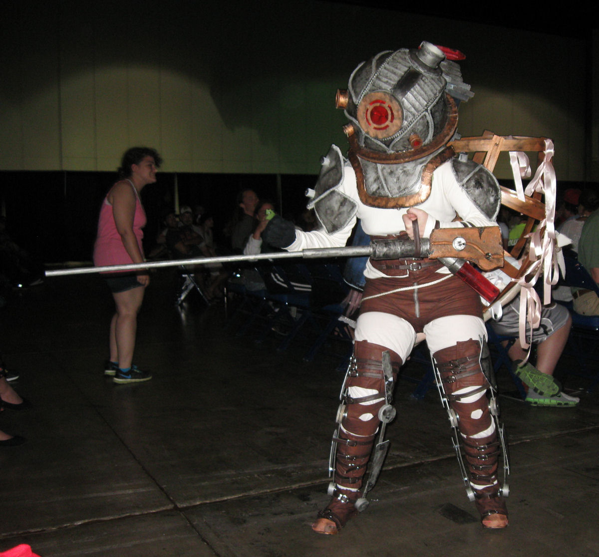 First place, professional division: Big Sister from Bioshock 2. This costume required a tremendous level of commitment because the helmet narrowed her field of vision to practically a pinpoint and rendered her effectively deaf. A family member (mom? sis?) had to serve as her guide through the crowd and as her interpreter when the judges had questions for her.