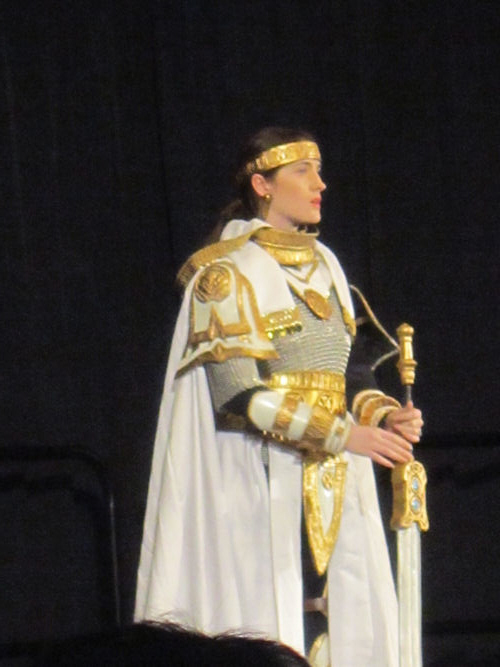 Caveat for newcomers to MCC: some of our photos aren’t the greatest ever. The 500 Ballroom is poorly lit at all times whether any conventions are using it or not. Flash photography was forbidden, which is just as well because using the flash from the non-Press-Pass, non-VIP seats produces even worse results. This is something my wife and I enjoy doing, to show our appreciation and awe for those with the flair for this particular aspect of the scene. We apologize in advance for the costumes we missed, and for the opportunities we blew because of our limitations and hindrances.