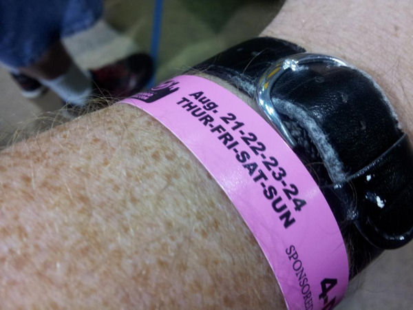 I don’t know what’s cool or uncool in headgear these days (beyond a recent surge in internet snark about fedoras), but a fez is a much better accessory than a plastic four-day admission wristband. If you bought a Wizard World VIP package, you were given a nice badge on a lanyard to wear. The rest of us were cursed to wear one of these disposable manacles for the duration of the weekend, even when we weren’t at the con. These quickly became ugly irritants.