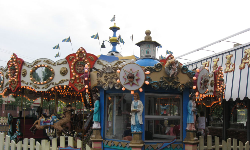 In front of Ella’s was the grandest knickknack of all: a working carousel! Whee!