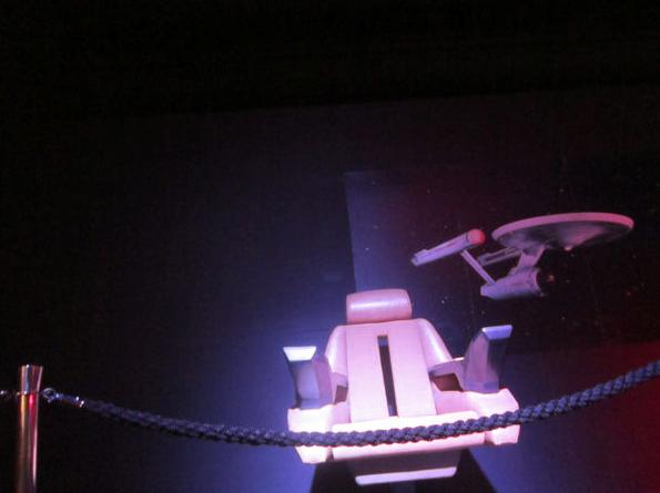 The Exhibition centerpiece is the replica bridge shown above. They’ll take a photo of your party at the helm with their wall-mounted camera for a price, and what you see was the best of their two tries. No, there’s no battle simulation or any real action involved. You have your choice of sitting in the Captain’s Chair or manning the comm without sitting, just like a true nervous ensign trying to make the most of their five-second screen presence.