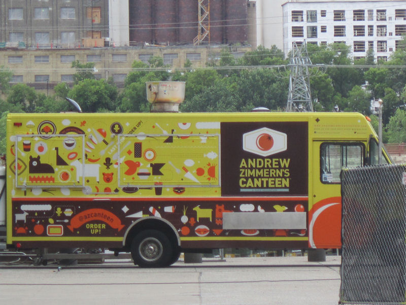 Here and there, a few commercial elements poke out between structures. Some of the walkways were closed off for party-planning for that week’s hosting of the Major League Baseball All-Star Game. We found one food truck lying in wait for customers anticipated later that evening.
