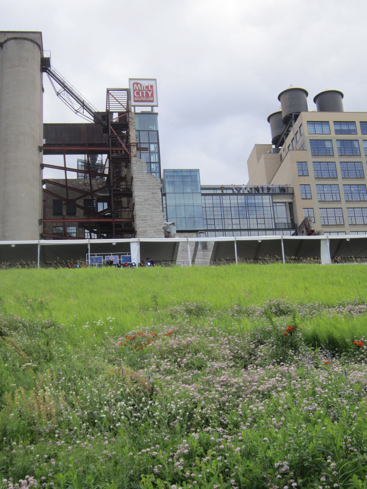 The street view of the Mill City Museum block is mostly former factories and other industrial shells. Behind the old-time working-class exterior: nature!