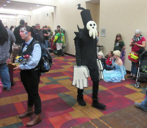 We rested in the main hallway for a while. We saw more cosplayers. We fled the premises early.