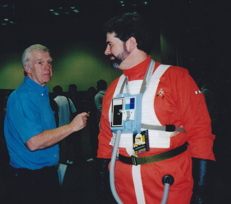 Celebration II featured the world premiere of Jorg Sacul, an Expanded Universe characters with zero stories to his name, as he’s just George Lucas in an X-Wing Pilot suit, which was Celebration II’s exclusive action figure. That was good enough backstory for this fan, who’s exchanging thoughts with actor Jeremy Bulloch at left.