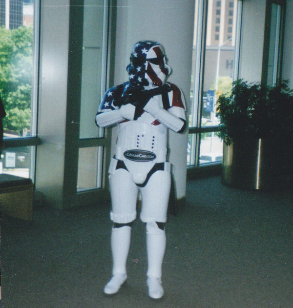 After the final victory by the Rebel Alliance, some Stormtroopers signed up for tours of duty in other military units. Or they’re just fans of the good ol’ USA.