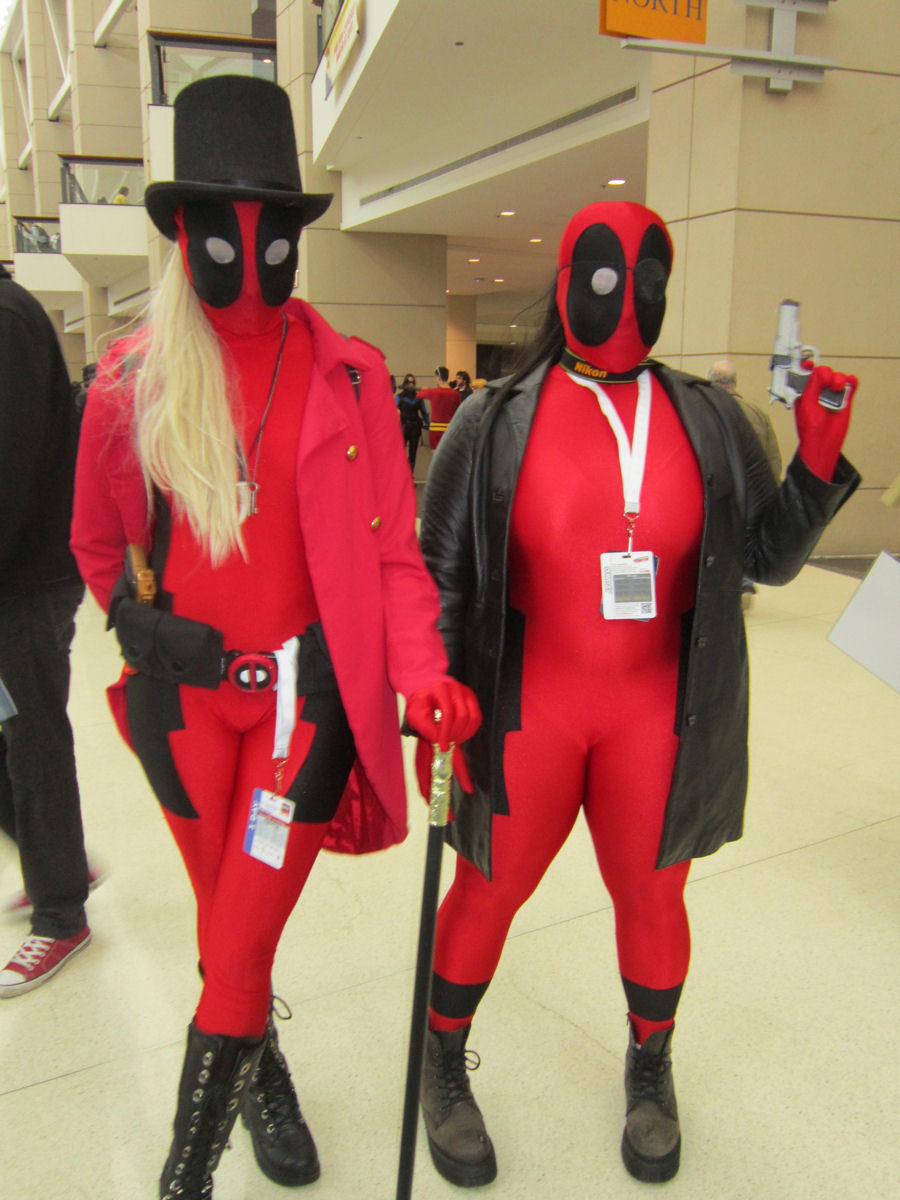 Today’s feature: Deadpool! Lots of Deadpool! Some popular characters were cosplayed in droves, but no one had as many off-kilter variants as Deadpool. His fans don’t just want to be him: they want to be him being anyone else but himself. We found ten different Deadpools roaming the convention Friday and Saturday, and who knows how many dozens more we missed.