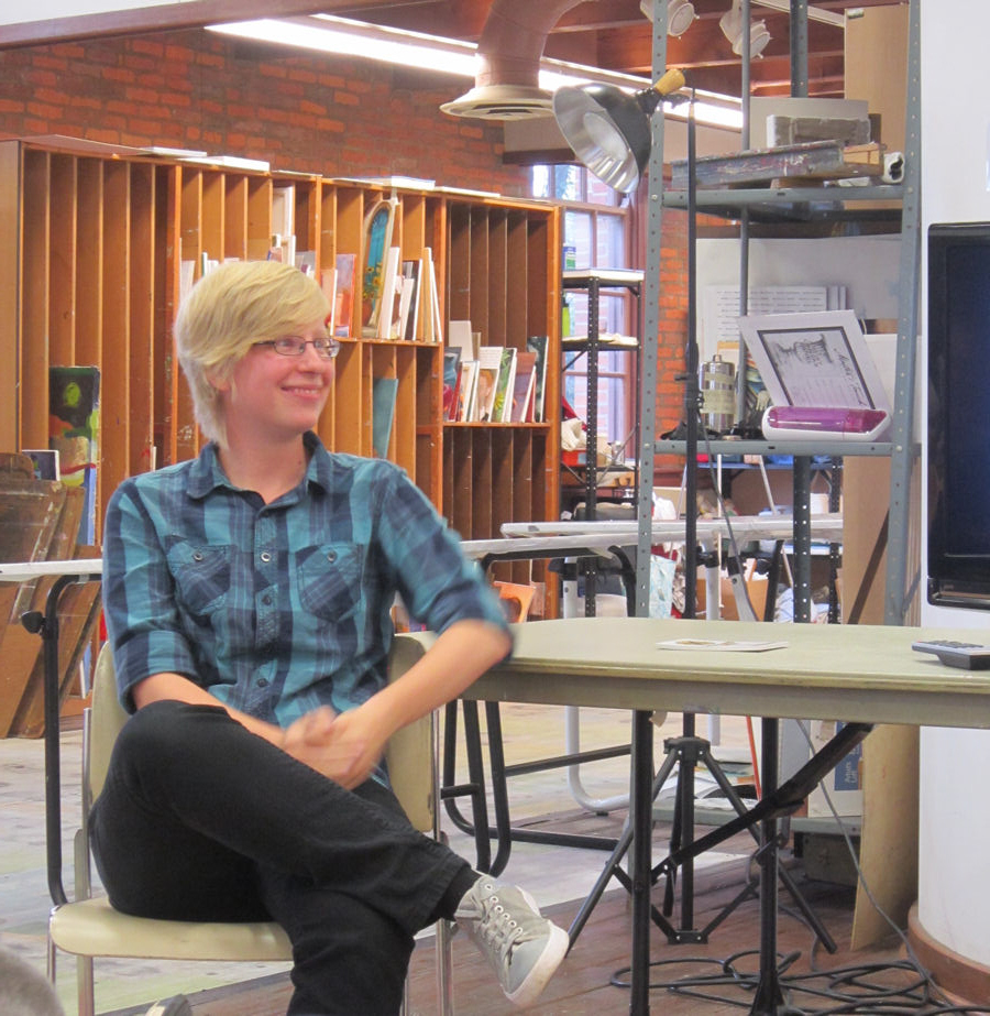 The Center has three stories, open ceilings, beautiful hardwood floors, and a courtyard outside lined with artifacts and a sofa. It seemed the perfect size and ambiance for the festivities, if a bit warm from all the bodies. The ground-level space was crowded nonstop with artists and fans alike. I should mention admission to nearly every CXC activity was free (including all Saturday events), thanks to several generous sponsors.