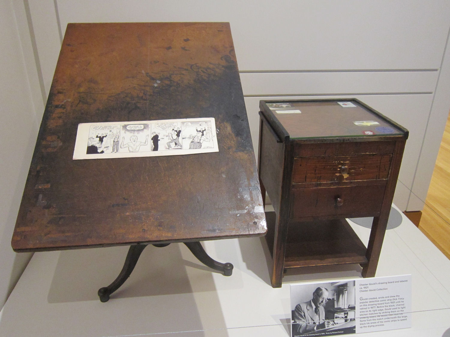 Dorkin was treated to an exclusive behind-the-scenes tour, but the public displays are sufficiently worthy for comic art aficionados. After a courtesy docent greeting your first sights are the drawing-room furniture of Dick Tracy creator Chester Gould.