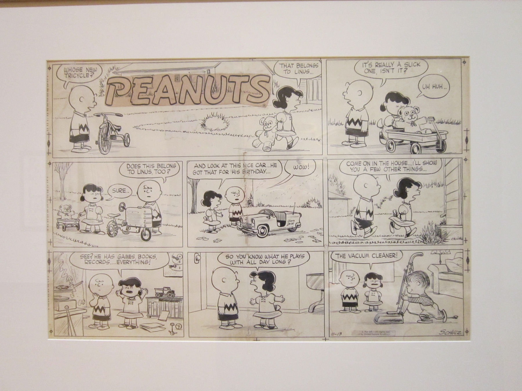 This damaged Charles Schulz Peanuts page cries out for a plaintive Martin Scorsese speech about the importance of art preservation. I winced hard when I noticed the rips.