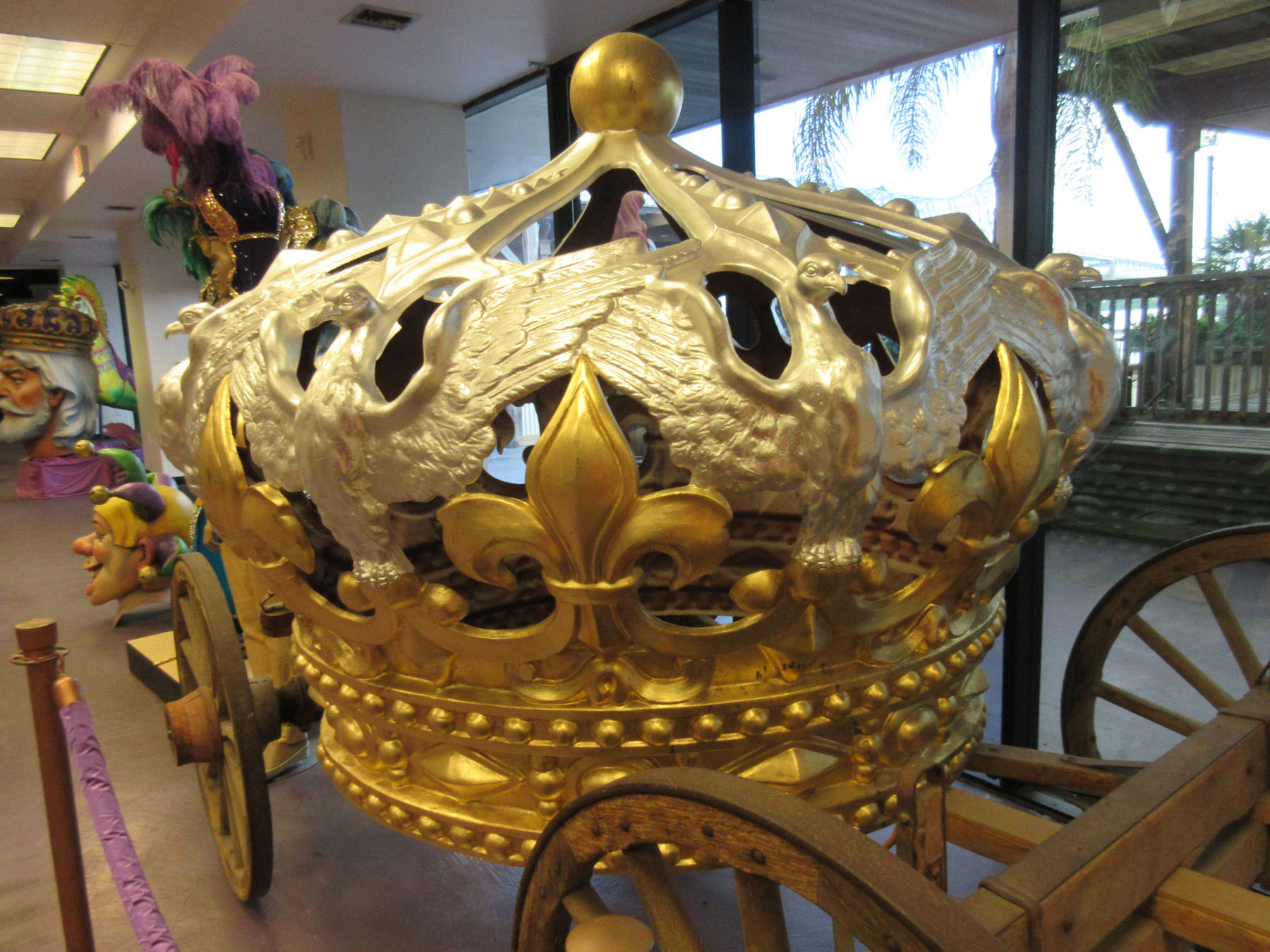 Anne and I don’t drink, party, observe Carnival, or socialize while our clothes are missing, but we thought it wouldn’t hurt to look into the prettier, safer element of those shindigs: the famous parades and their scintillating floats. So that’s what lured us to Blaine Kern’s Mardi Gras World.