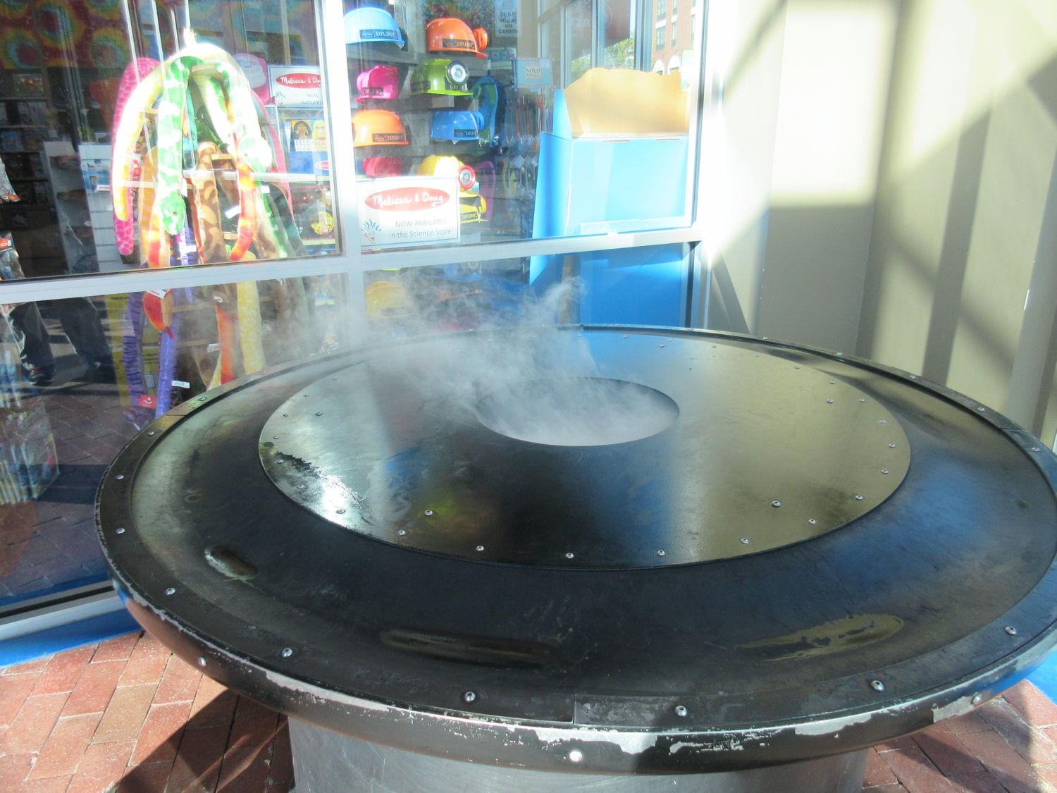 The Terre Haute Children’s Museum has a cloud-making machine in their foyer. You can see that and browse their gift shop for free. We had no kid with us, so we didn’t check out the exhibits past the paywall.