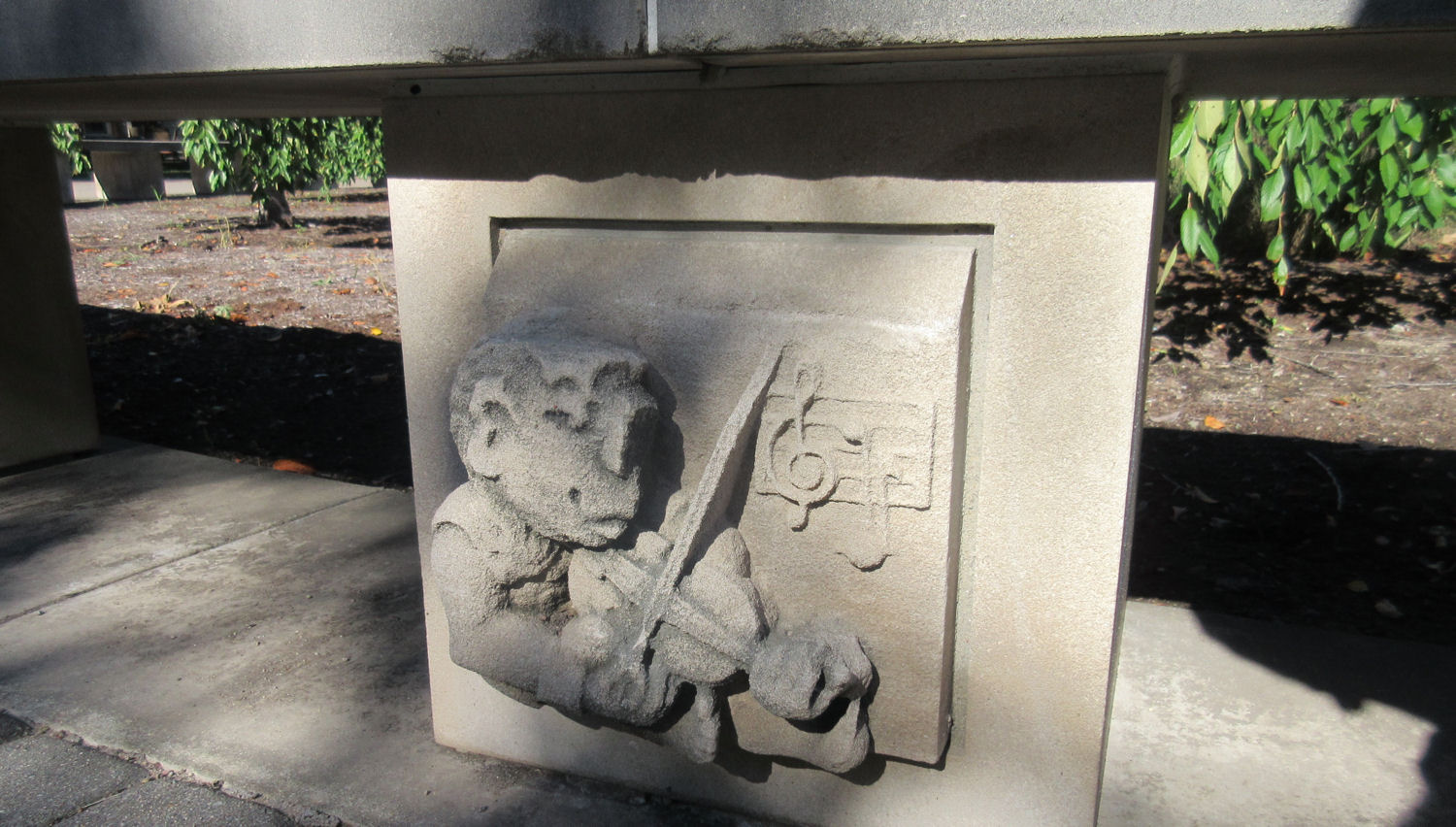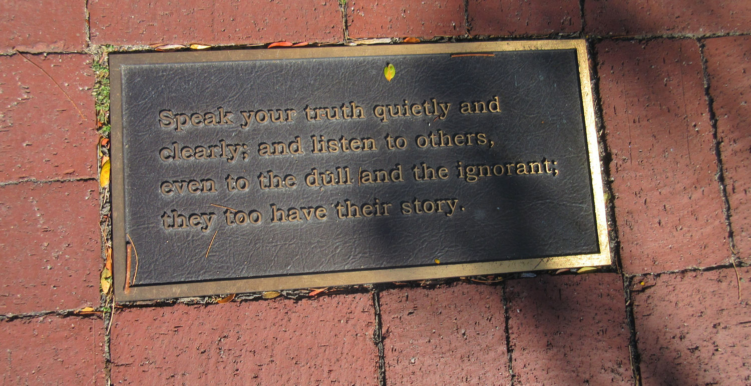 This challenging advice is one of several verses from “Desiderata” embedded in the brick walkway around Ehrmann’s statue.