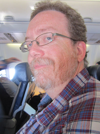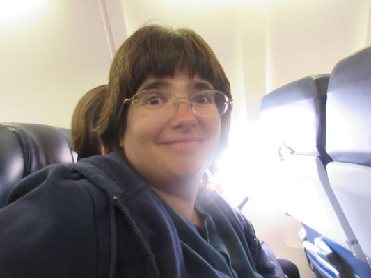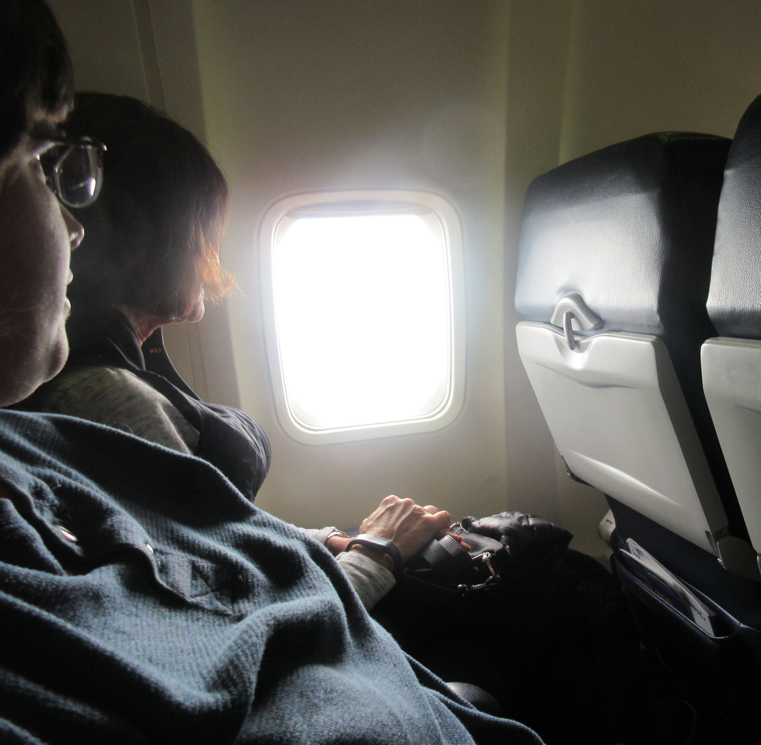 I had the aisle seat and consequently have no cool window images to share. Meet the silent stranger who sat with us and read the morning paper as a means of signaling to anyone who asked that she was indeed alive.