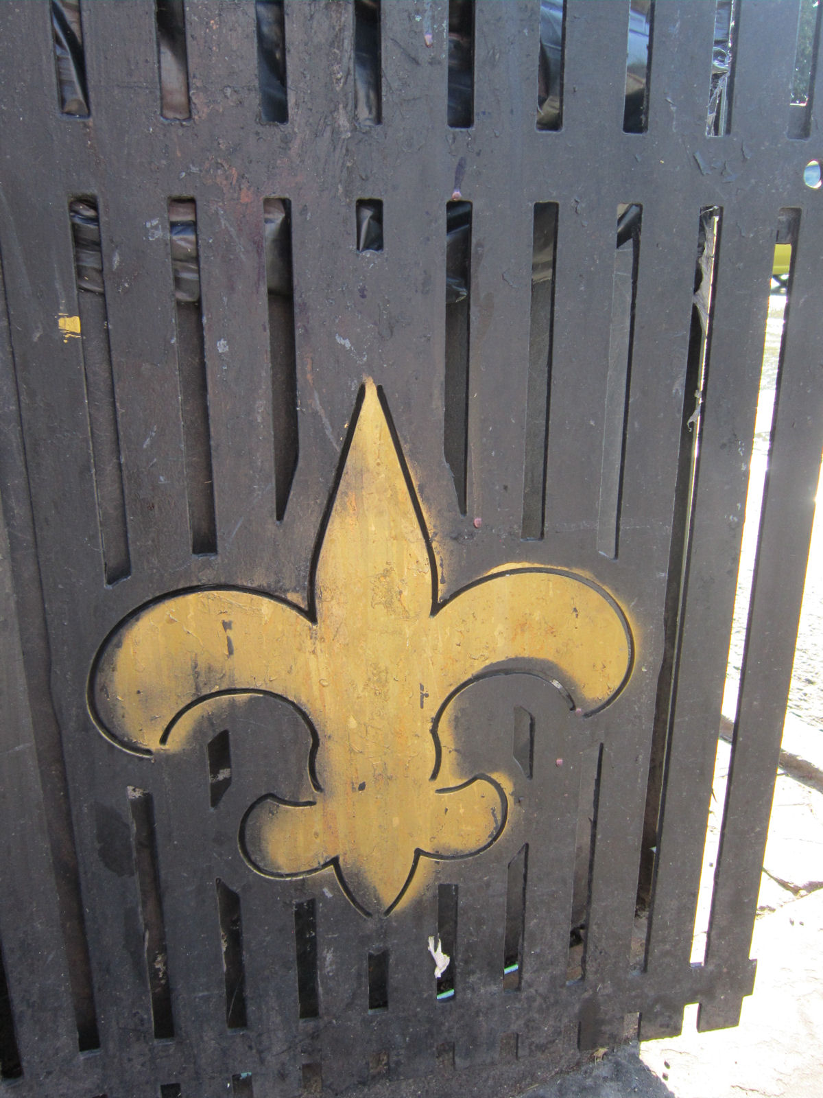 Plastered across someone’s gate was a large fleur-de-lis, a common French symbol of flowers, ancestry, and monarchy. We’ve seen it as a frequent decoration here and there, but some have also decided it’s deeply problematic. We don’t have these around much back either, so we hope everyone can forgive our ignorant lack of disgust.