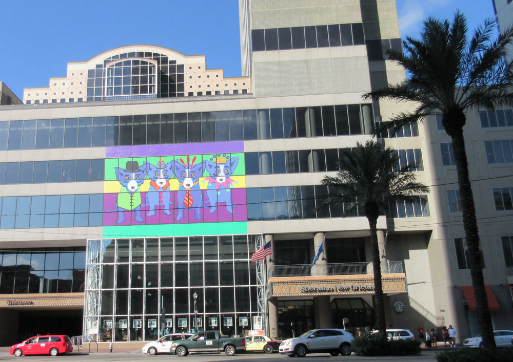 Once more we found ourselves for a block along Canal Street, the DMZ between the French Quarter and the Central Business District. Our side of the road had a McDonald’s; theirs had a Sheraton Hotel with giant puppies on it.