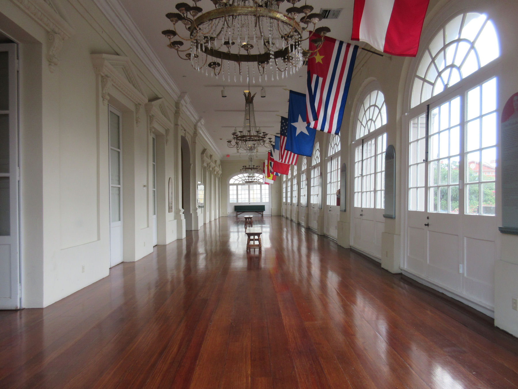 This second-floor gallery had nothing going on except flags, but it was a nice place to sit and rest before we had to return outside to the sweltering summer.