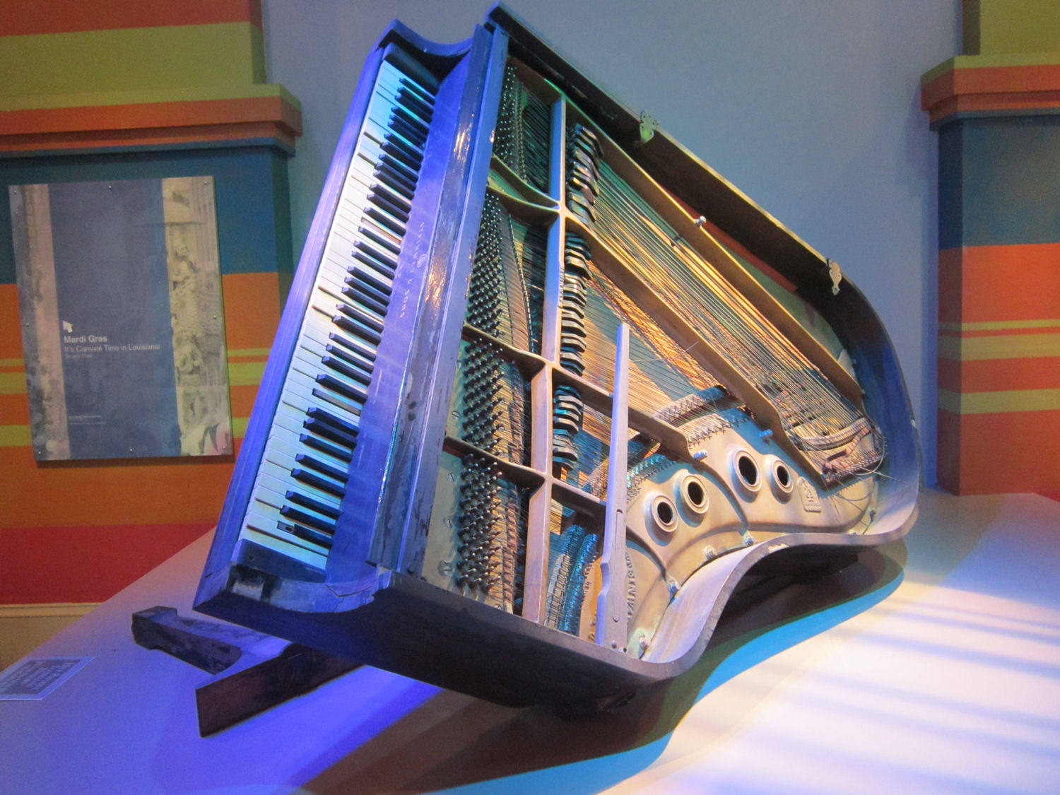 The Presbytere’s ground floor is entirely about Katrina — a timeline of events, news footage and interviews, and relics of the destruction and the chaos that followed. Past the greeters is what’s left of another one of Fats Domino’s pianos.