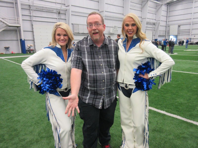 Also mingling with the crowd: authentic Colts cheerleaders. I can honestly say I’ve never had my photo taken with a professional cheerleader before, let alone two. Today was filled with new experiences, but for me this scene may have been the weirdest of all.