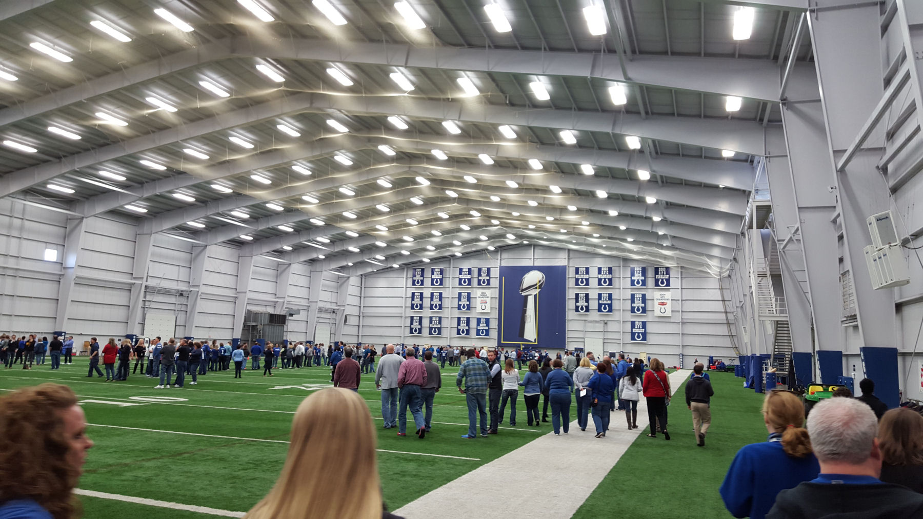 As a reward for an above-average year, today my company sent numerous employees on a field trip to the Indianapolis Colts Training Facility on the northwest side of Indianapolis, where they spend hours upon hours working out, honing, drilling, planning, and doing everything within their power to man up so that when things go wrong during each game, it’ll hopefully be someone else’s fault.