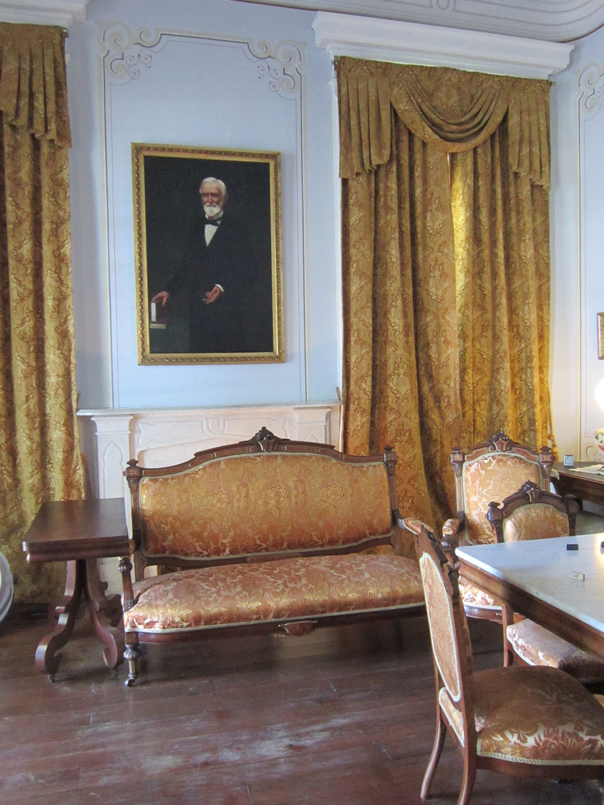 The tour guide commentary was strictly limited to descriptions of the home and its contents, everyday living, and some light historical context as it pertained to fashion, arts, and technology of the time. Other than one specifically worded mention of the original owner’s “enslaved chefs”, slavery and most other factors pertaining to the Civil War were largely circumlocuted, even in this, the 150th year since the South’s surrender.