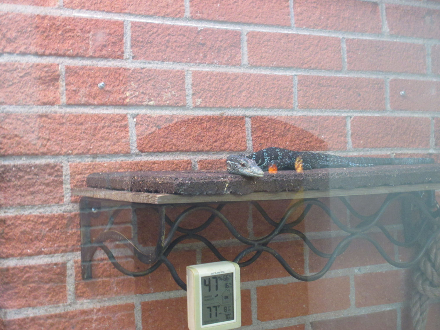 I’ve opted to post a closer shot of this blue tree monitor, but the entirety of its cage looked like an antique shop booth.