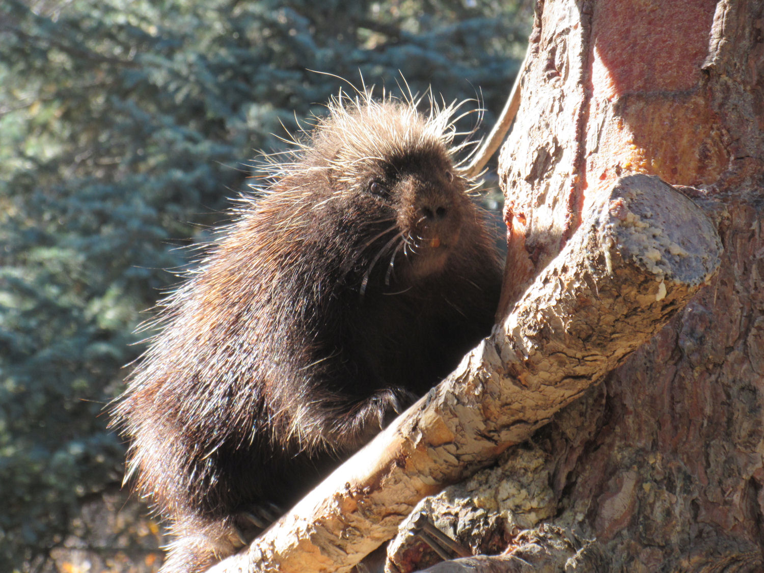 This was by far the most industrious porcupine I’ve ever seen — crawling across limbs from one tree to the next, then holding on to a trunk with all fours as it slowly climbed down, lowering itself a few centimeters at a time, till it reached bottom and went its merry way.