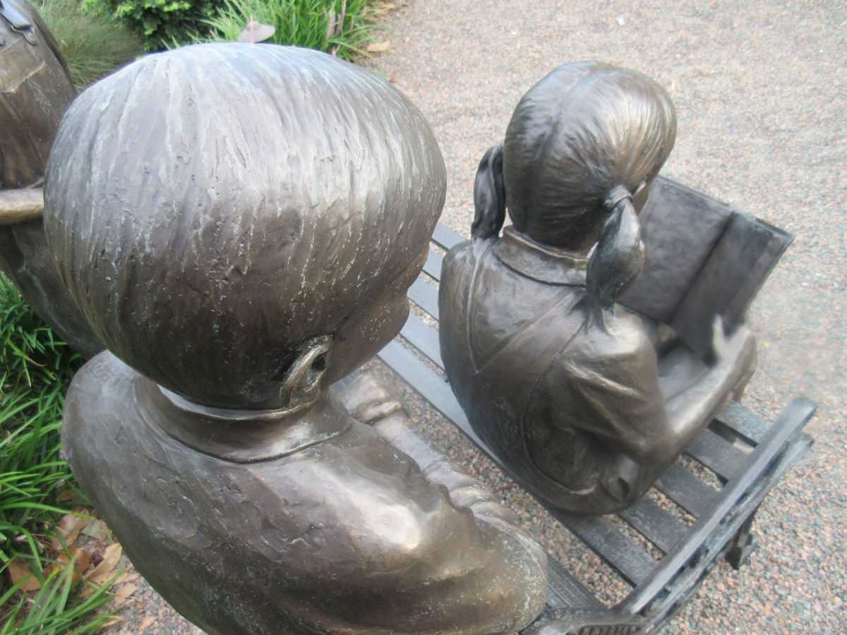 It took us a full lap around the square to find the best outdoor tribute: bronze statues of what we presumed to be Scout, Dill, and Jem relaxing in a park.