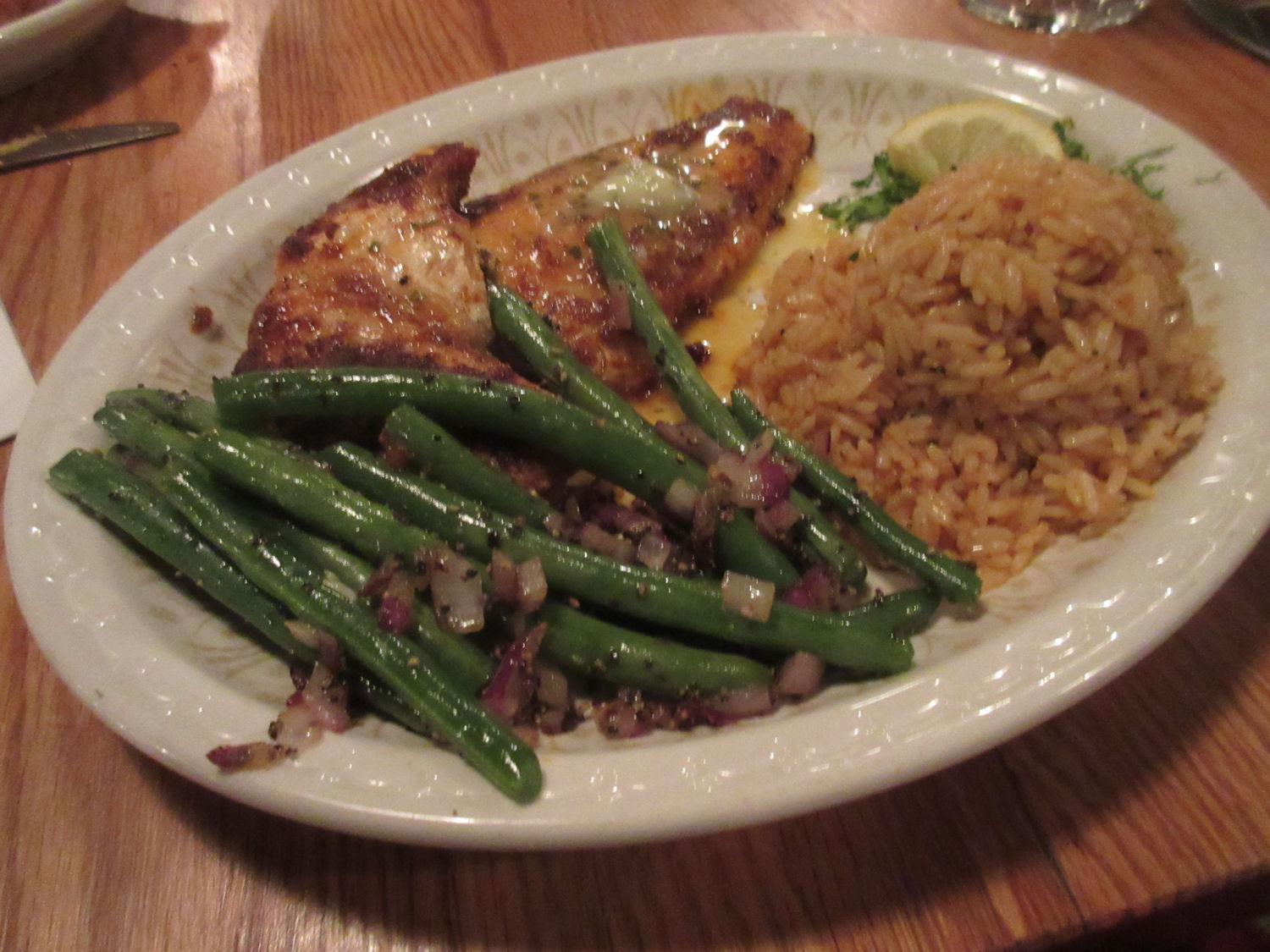 Their dining room seemed huge, but was nearly empty on Monday night. Our server was congenial and versed in which cooking methods are a better fit with which fish species, though service wasn’t the speediest despite the lack of competition from other customers. Maybe that’s a good sign of cooking to order as opposed to nuking last Thursday’s specials.