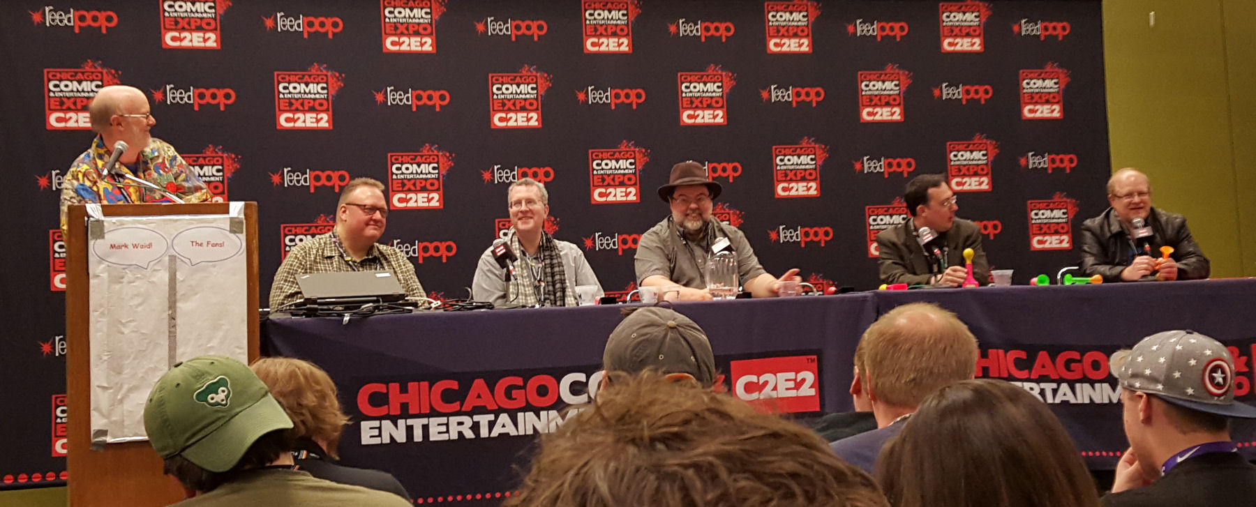 Pictured left to right: moderator Craig Shutt, Mike Chary, Jason Fliegel, Tom Brevoort, Todd Allen, and Mark Waid.