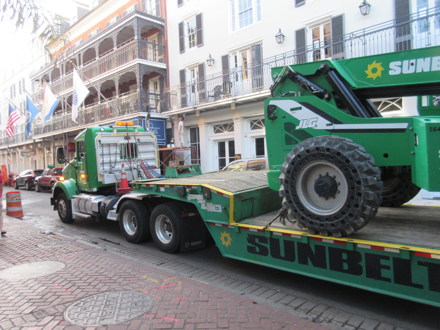 I had a hard enough time maneuvering a mere SUV through the French Quarter alleys trying to pass for “streets”. I can’t imagine an entire semi navigating it without demolishing signposts and cars all the way through.