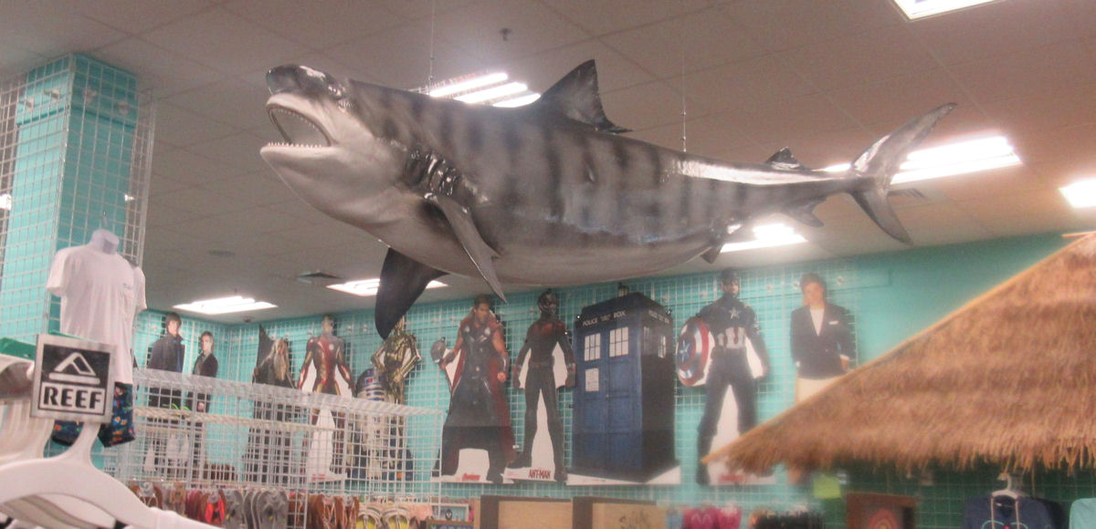 Another plastic shark hanging out at Shark Heads in Biloxi. I took quite a few pics of their cardboard standee collection, but they seemed duller in hindsight.