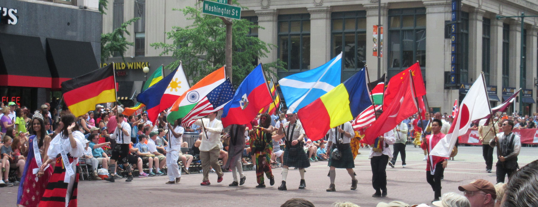 After we took this additional Nationalities Council shot, a few of them took out their phones to take photos of the Soldiers and Sailors Monument as they approach Monument Circle. Common phenomenon during every 500 Festival Parade right around this stretch.