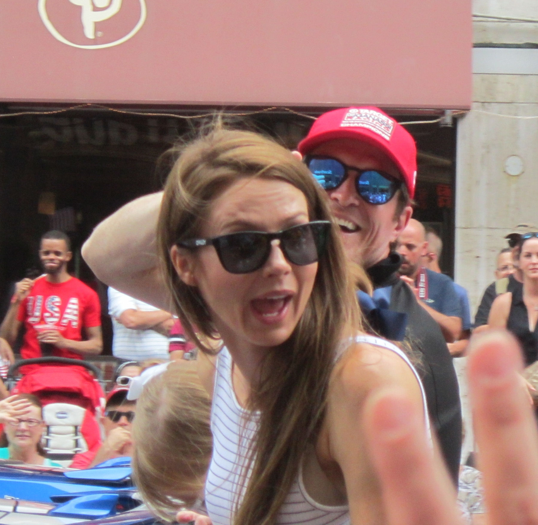 This year marked the sixth time my wife and I attended the Indianapolis 500 Festival Parade in downtown Indianapolis. It’s an annual date-day tradition for us —- partly to see the floats and high school marching bands, partly for the famous names and partly because I love the sight of a bustling downtown Indianapolis. The next six entries (to be posted over the next few days as quickly as time and attention span permit) represent a fraction of the pics my wife and I snapped. In many cases, encores and additional takes of specific subjects may be available if anyone out there is interested in seeing more, or is looking for a loved one who was in one of the many marching bands that day. For first-time MCC visitors, please note my wife and I are relative amateurs, absolutely not trained professional photographers, sharing these from a hobbyist standpoint because fun and joy.