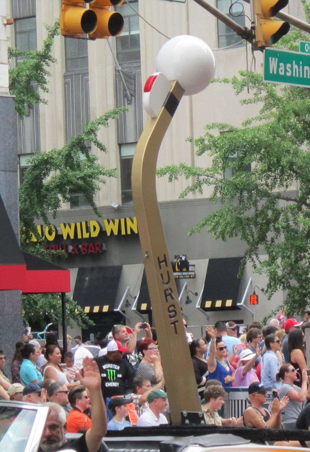 Just FYI, look into hot rod legend Linda Vaughn regarding the Hurst shifter. She was Miss Hurst, a calendar girl you might say. She was in the parade car following I believe. The huge shifter was a moving stage for photo ops back in the day.
