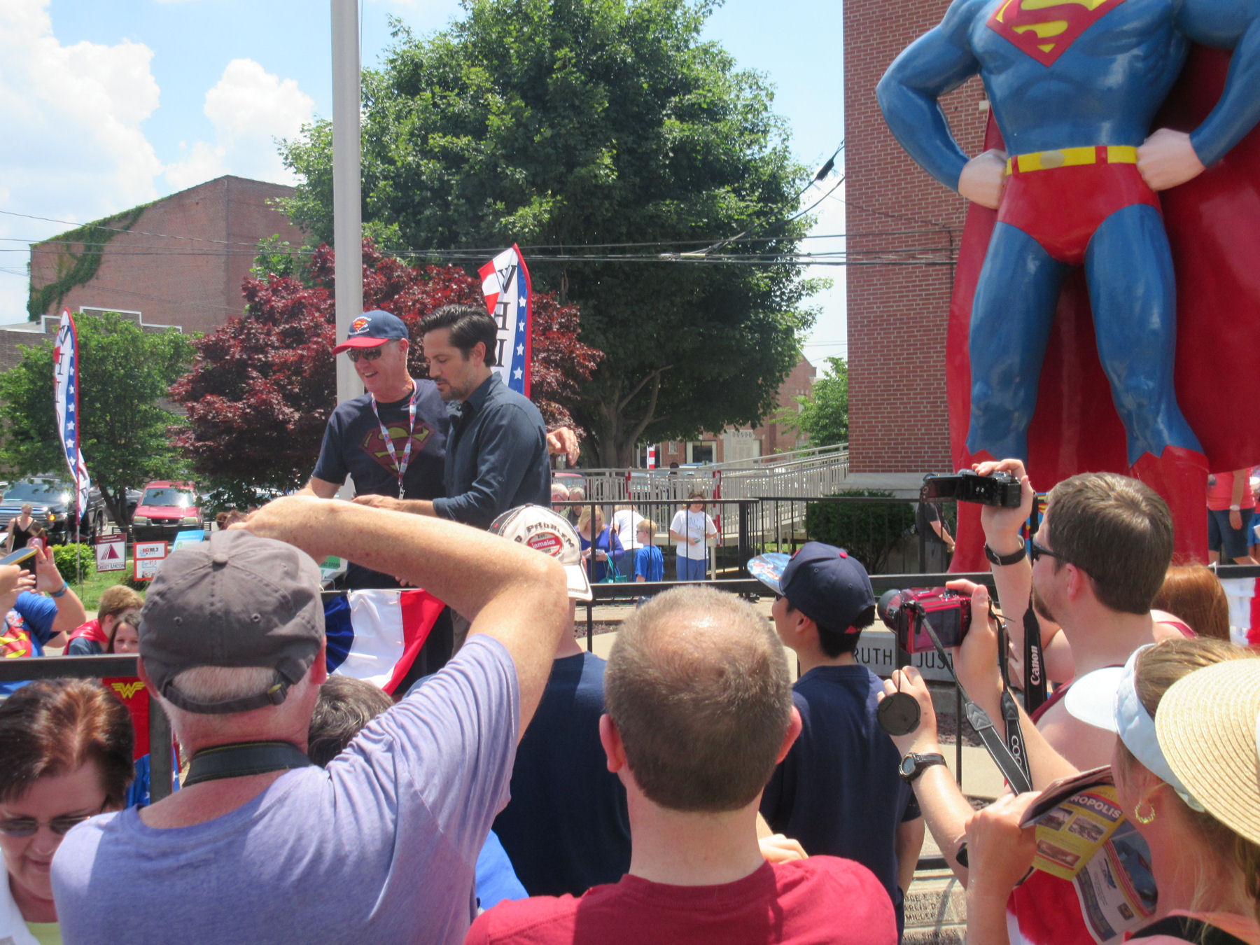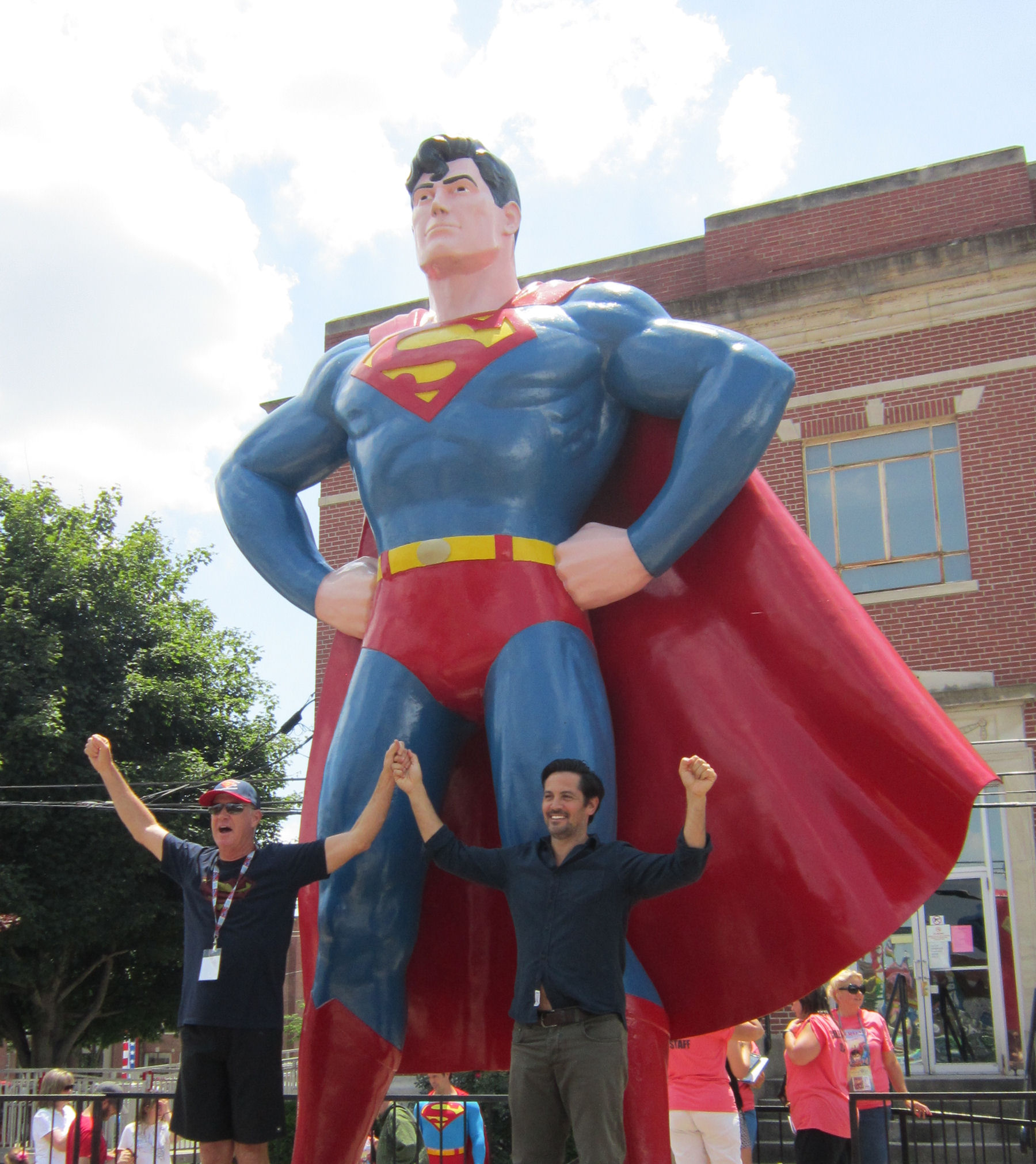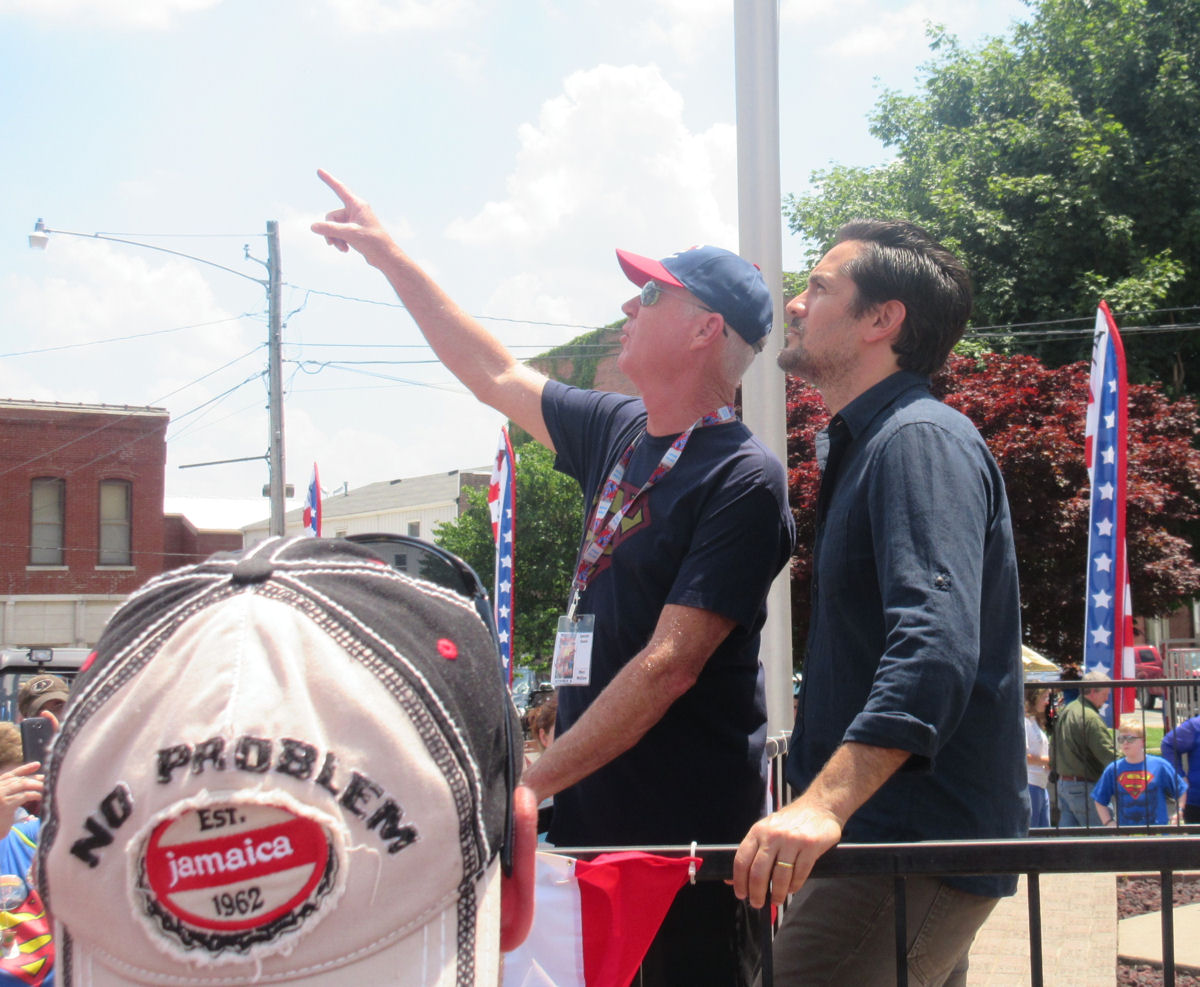 The two Jimmy Olsens joined forces at the Superman statue shortly before 1:30 and gave the crowd a double dose of Superman’s pal.