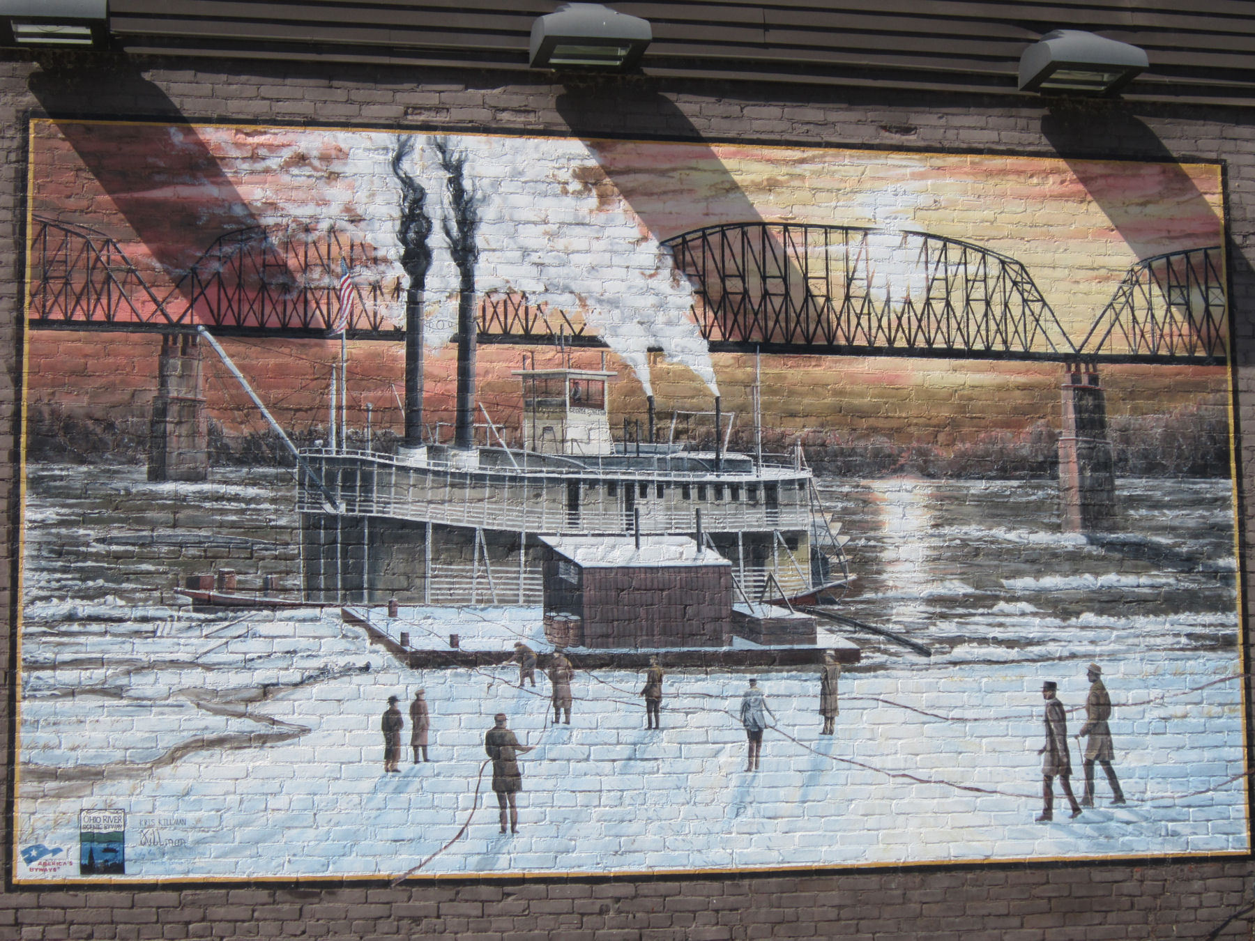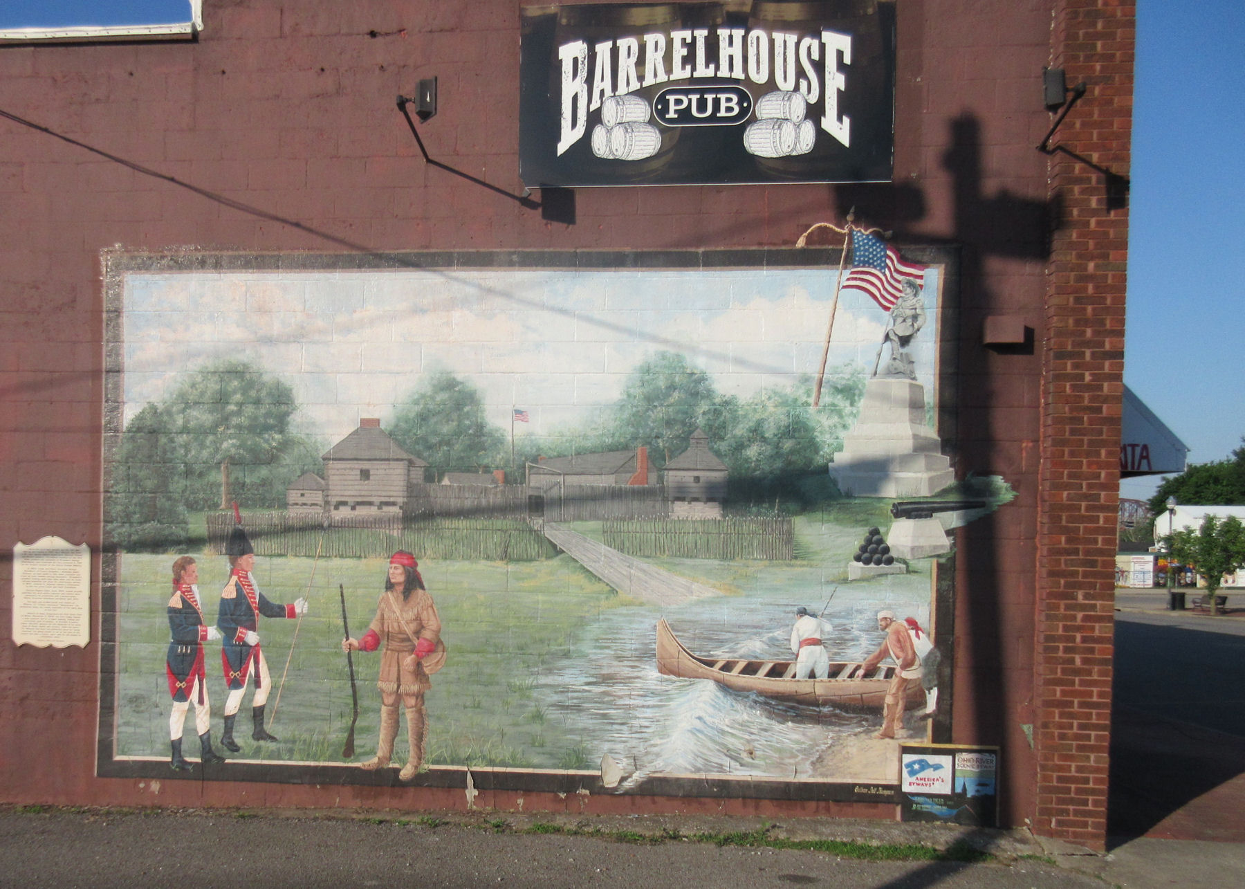 Mural #1: the Wamapoke tribe rolls out the welcome wagon for their new militia neighbors next door.
