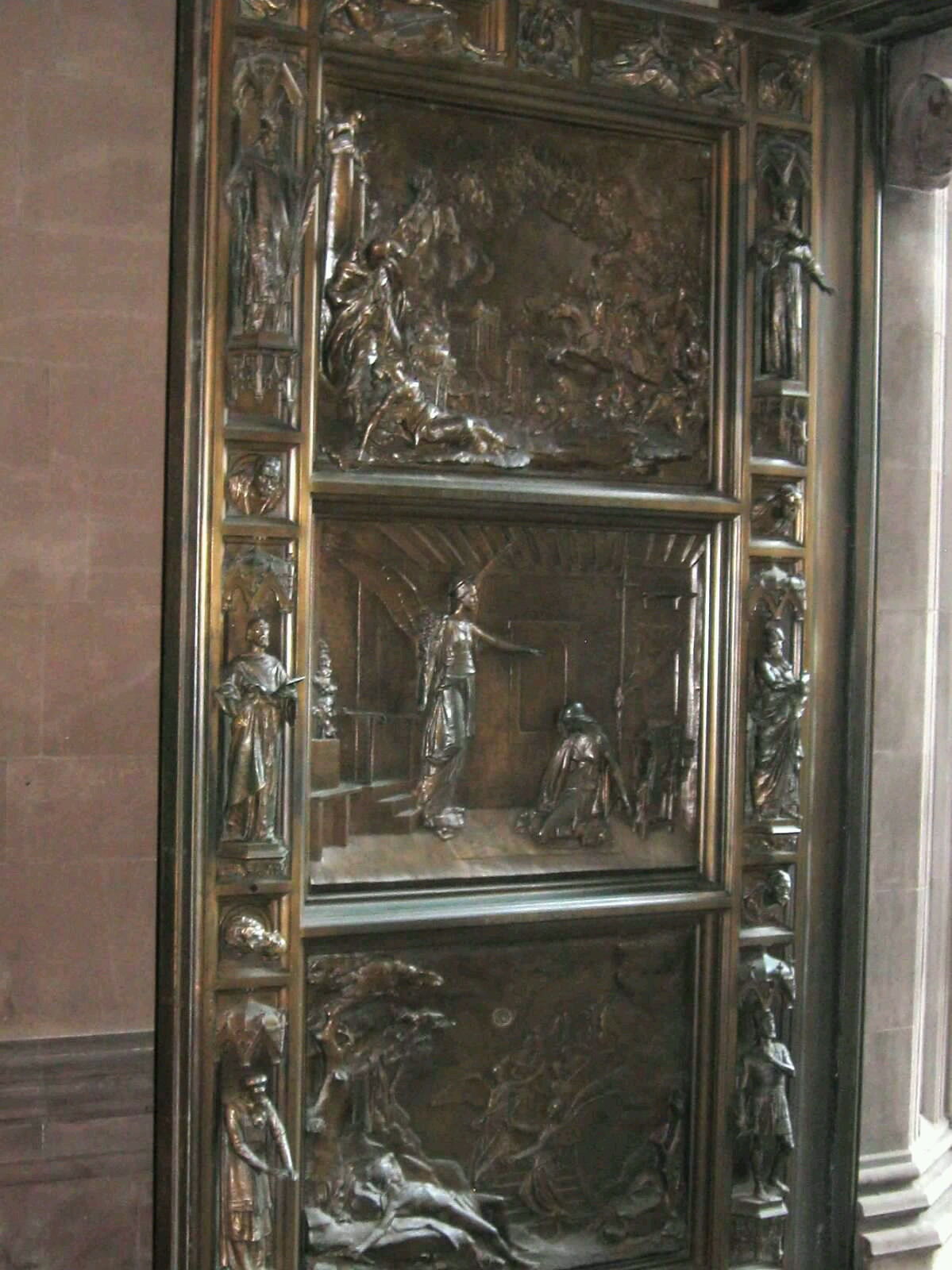 Trinity Church’s amazing, intricate doors welcome visitors with immediate artistic class and depictions of famous Bible scenes.