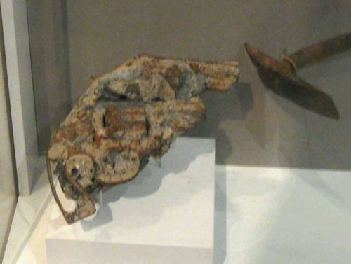 Also on display are various items obtained from the World Trade Center wreckage, including these .38 revolvers encased in melted concrete.