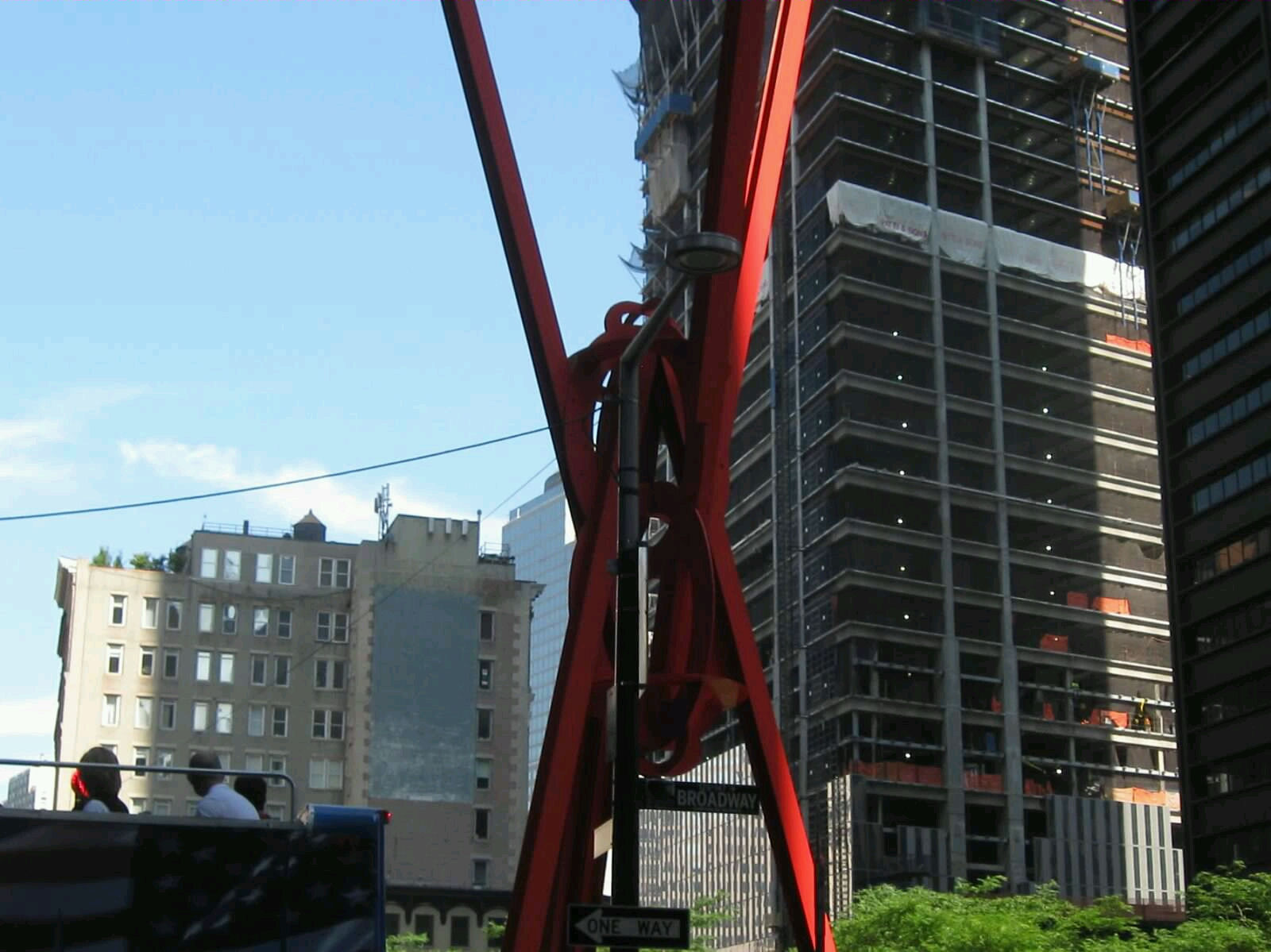The E train took us south from the Port Authority to the world-famous World Trade Center complex, a week after Independence Day and ten years after 9/11. Someday the area will be usable and photogenic again. At this point, unless your idea of photogenic is lifesize Tonka Truck construction playsets, no such luck. But it’s interesting to dream what’ll be made of the place.